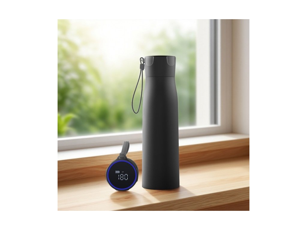 Vybrat si můžete ze dvou objemů podle toho, jak dlouho jste mimo domov. Varianta 500 ml má rozměry 7 × 24,5 cm a hodí se pro kompaktní každodenní nošení. Varianta 750 ml s rozměry 7,7 × 27 cm nabídne větší zásobu na delší cestu nebo sport. Láhev má vakuové provedení pro lepší termoizolaci a je vyrobená z potravinářské nerezové oceli 316. Pro přenášení je vybavená praktickým poutkem a díky odolnosti IP65 je vhodná pro běžné každodenní používání v pohybu. Oproti klasickým termoskám tak získáte termoláhev, která kromě izolace řeší i kontrolu teploty a podporu pitného režimu.