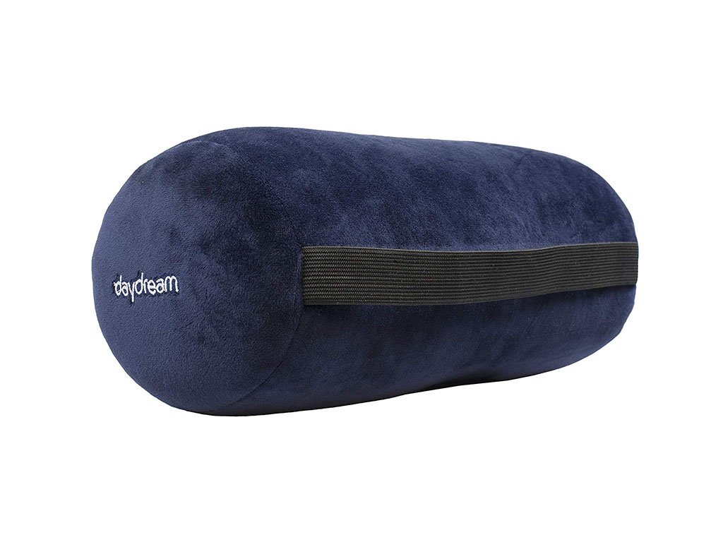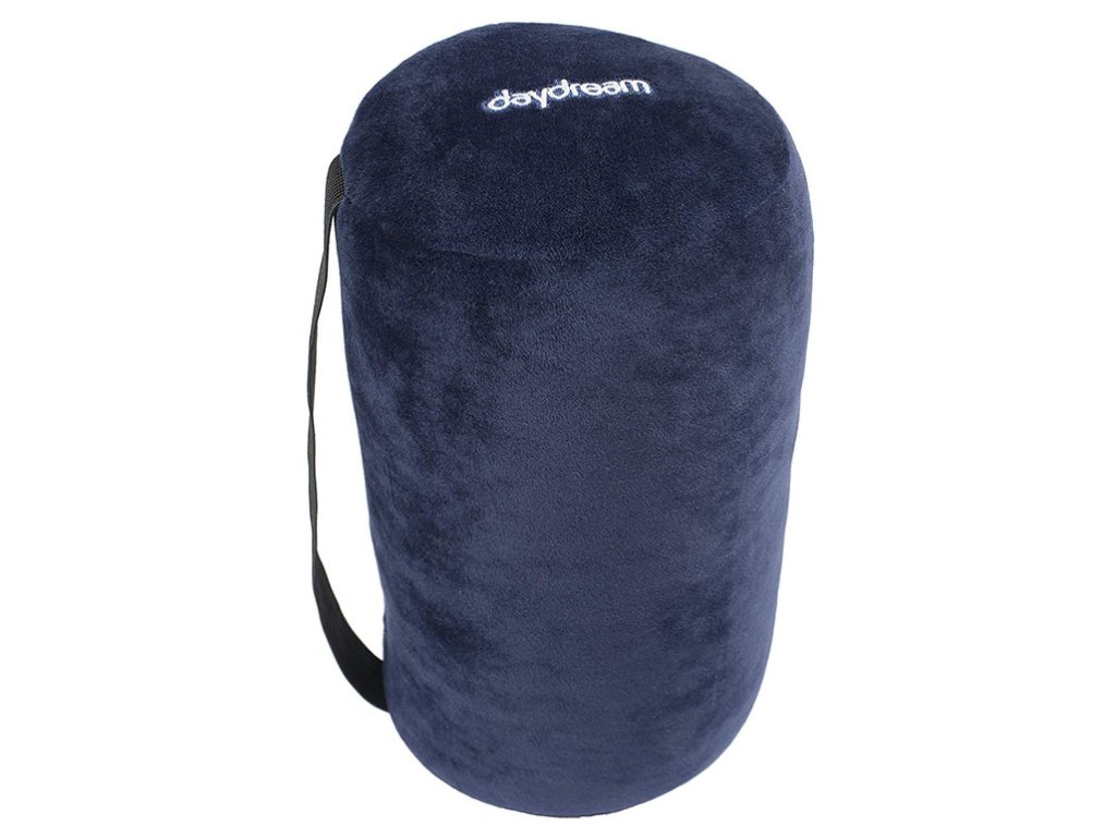 Tmavě modrý válec za krk Daydream má optimální tvar díky statisícům drobných polystyrenových kuliček uvnitř. Díky lepší poloze při cestování polštářek pomáhá zabránit bolesti krku a hlavy. Váleček Daydream je velmi měkký a je vyroben z elastického plyše.
