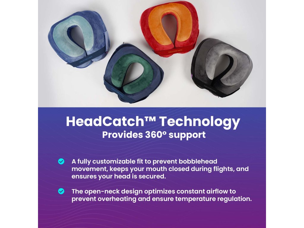 Tvar polštáře se přizpůsobí Vaší hlavě i krku. Boční části poskytují oporu, zadní část je zploštělá, aby se pohodlně opírala například o sedačku v letadle.