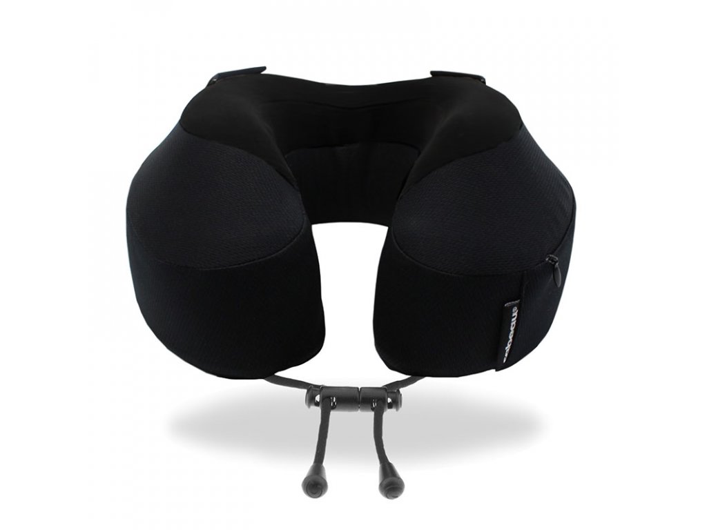 Přední nastavitelná spona drží polštář pohodlně kolem krku, zatímco ergonomický tvar s vyvýšenými stranami a plochými zády podporuje správné držení páteře. Výsledek? Opravdový spánek – nejen předstírání.