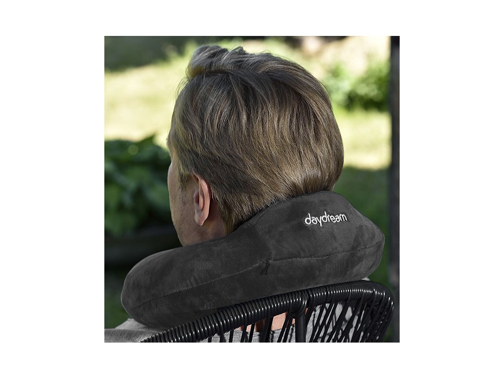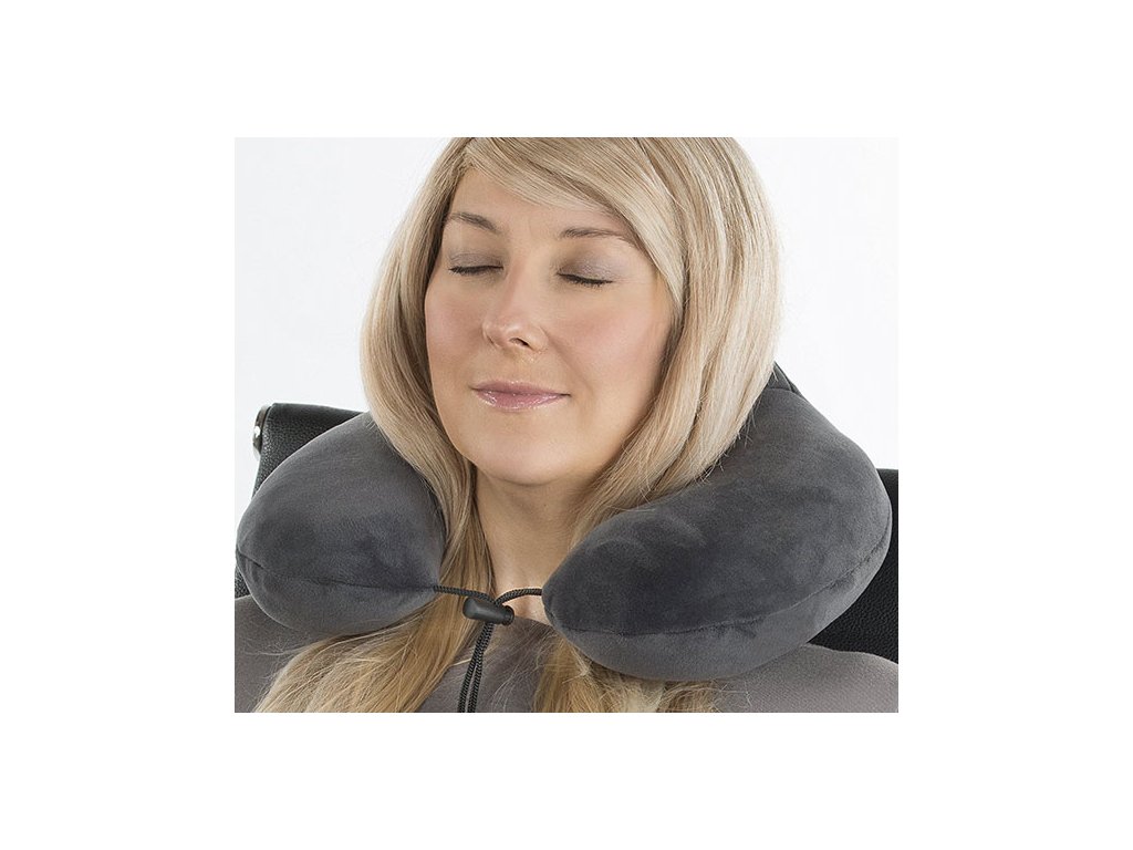 Měkký cestovní polštářek černé barvy z paměťové pěny. Reaguje na teplotu a tlak těla. Perfektně se adaptuje konturám hlavy a krku. Ideální pro čtení, sledování televize nebo dlouhé cesty. Zároveň vhodné do vany a do auta. Pomáhá se vyvarovat bolesti krku a hlavy.