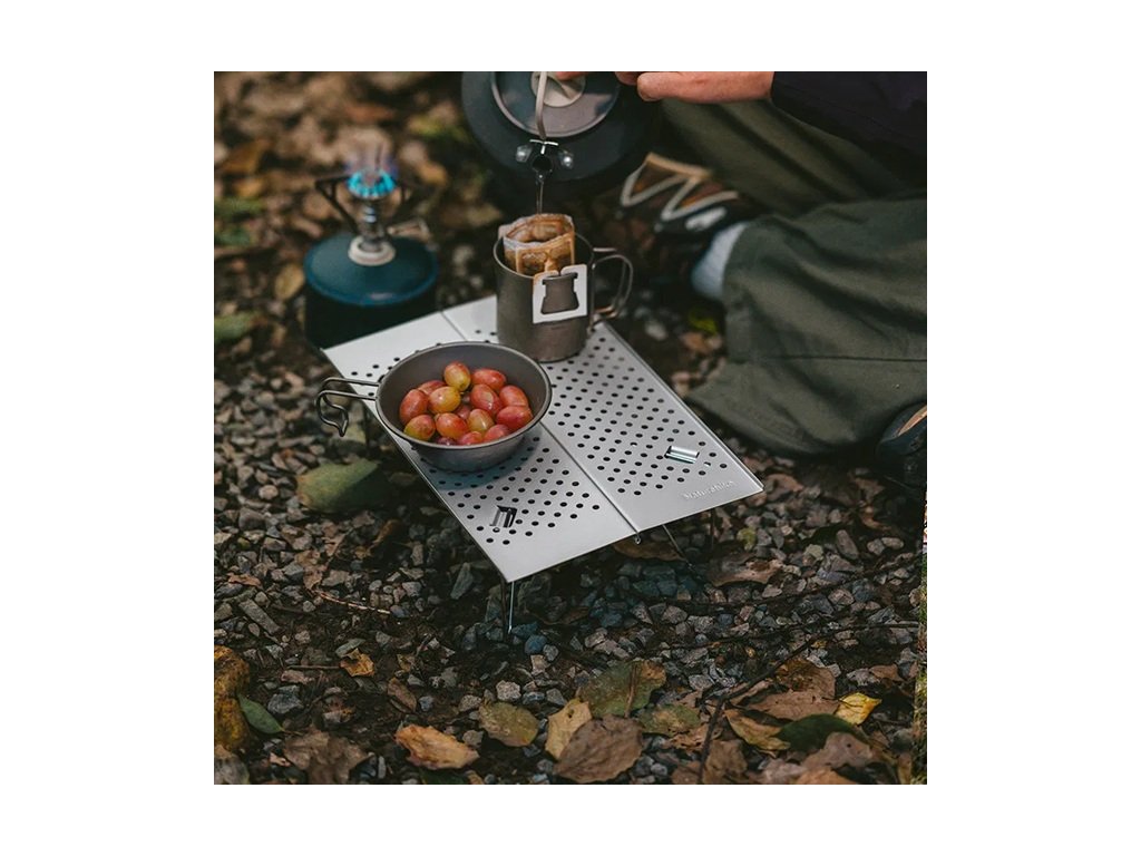 Rozměr 31 × 21 × 10,3 cm poskytuje dostatečně velkou odkládací plochu na věci jako je hrnek, vařič, telefon nebo jídlo, přičemž stolek zůstává stabilní a pevný. Jeho ultra nízká hmotnost z něj dělá skvělého pomocníka pro každého, kdo potřebuje skladné řešení bez kompromisu na kvalitě. Ať už vyrážíte na trek, do kempu nebo jen na krátký výlet, tento mini stolek vám usnadní každý pobyt venku.