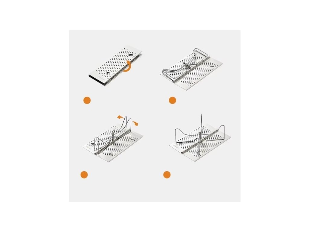 Stolek MINI se vyznačuje jedním z nejjednodušších systémů instalace – celý se rozkládá v jednom kuse během několika vteřin. Speciální konstrukční opora ve tvaru X zajišťuje pevnost a stabilitu i na méně rovnoměrných površích. Díky tomu se můžete spolehnout na bezpečné používání v přírodě, u rybníka nebo na pikniku. Po složení má stolek pouze 10,8 × 31 × 1,7 cm, takže se vejde do každého batohu nebo přihrádky v autě.