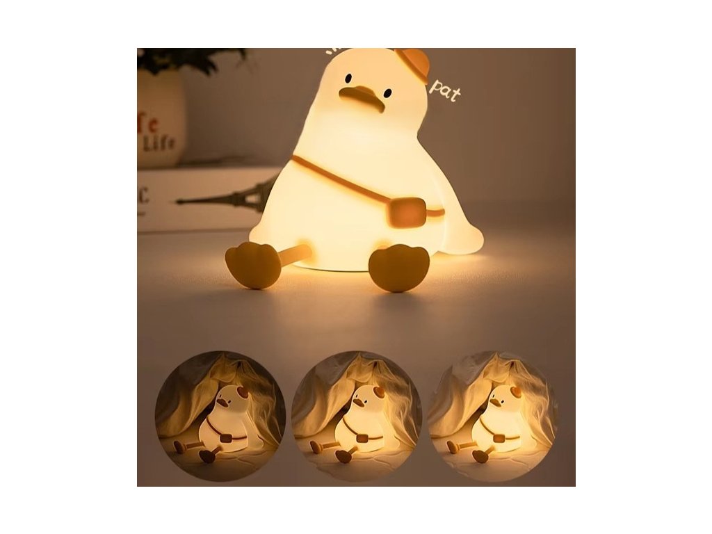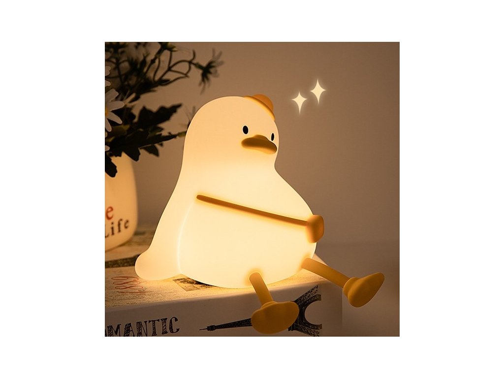 Tato roztomilá silikonová lampička ve tvaru kachničky s kabelkou a kloboučkem je ideální doplněk do dětského pokoje nebo ložnice. Poskytuje příjemné žluté světlo ve 3 intenzitách, které pomáhá vytvořit příjemnou atmosféru vhodnou pro odpočinek nebo usínání. Lampička je vyrobena z nezávadného potravinářského silikonu a ABS materiálu bez BPA, což ji činí bezpečnou i pro ty nejmenší děti. Její roztomilý design z ní dělá perfektního společníka do dětského pokoje pro děti i originální dekoraci.