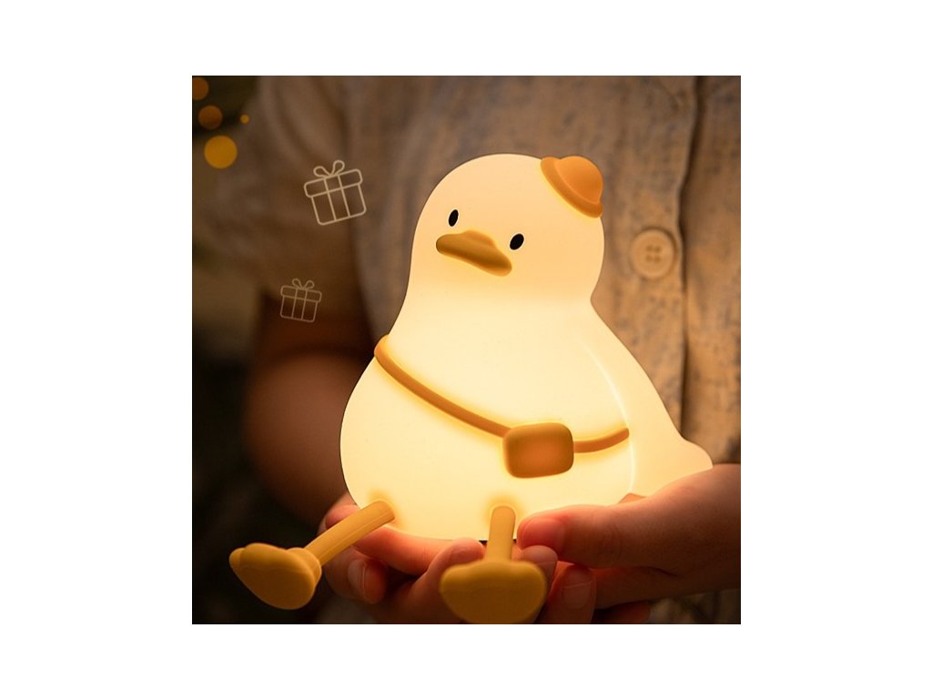 Tato roztomilá silikonová lampička ve tvaru kachničky s kabelkou a kloboučkem je ideální doplněk do dětského pokoje nebo ložnice. Poskytuje příjemné žluté světlo ve 3 intenzitách, které pomáhá vytvořit příjemnou atmosféru vhodnou pro odpočinek nebo usínání. Lampička je vyrobena z nezávadného potravinářského silikonu a ABS materiálu bez BPA, což ji činí bezpečnou i pro ty nejmenší děti. Její roztomilý design z ní dělá perfektního společníka do dětského pokoje pro děti i originální dekoraci.