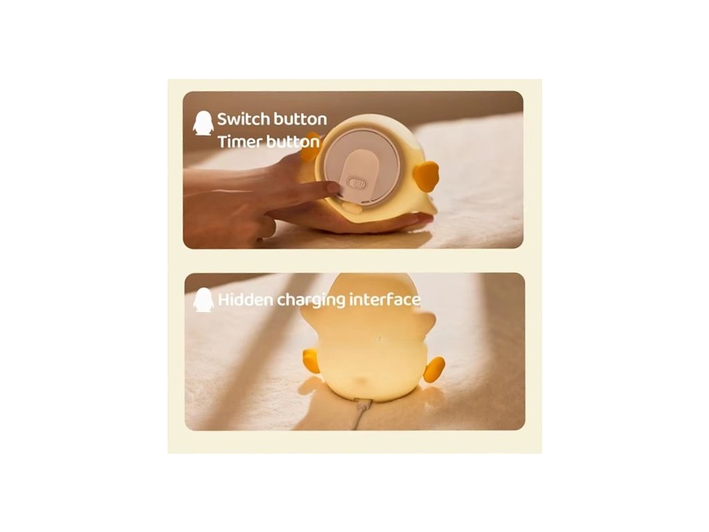 noční lampička do dětského pokoje silikonový design LED žárovka, nabíjecí kabel tři módy svícení, časovač