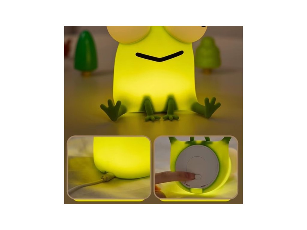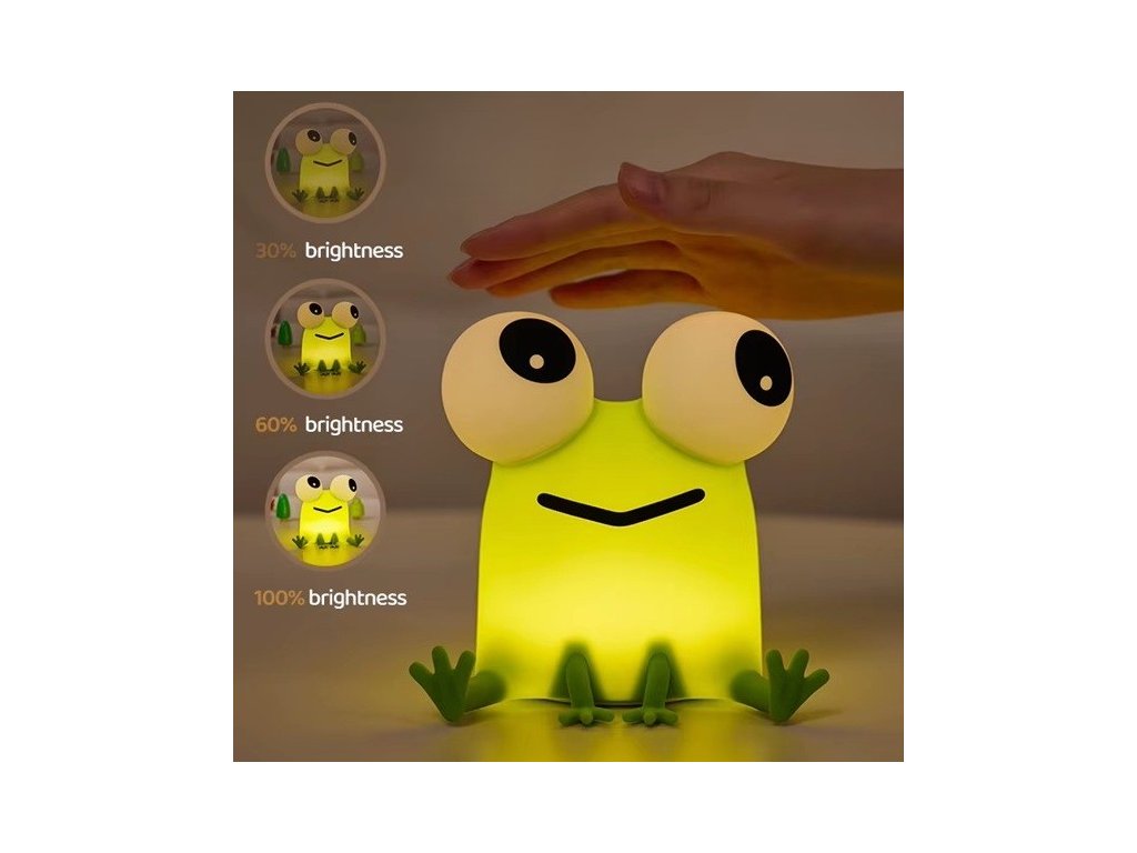 Tato roztomilá silikonová lampička ve tvaru žabičky je ideální doplněk do dětského pokoje nebo ložnice. Poskytuje příjemné žluté světlo ve 3 intenzitách, které pomáhá vytvořit příjemnou atmosféru vhodnou pro odpočinek nebo usínání. Lampička je vyrobena z nezávadného potravinářského silikonu a ABS materiálu bez BPA, což ji činí bezpečnou i pro ty nejmenší děti. Její roztomilý design z ní dělá perfektního společníka do dětského pokoje pro děti i originální dekoraci.