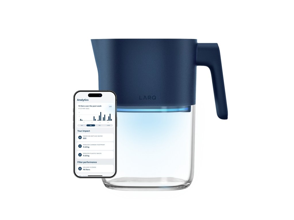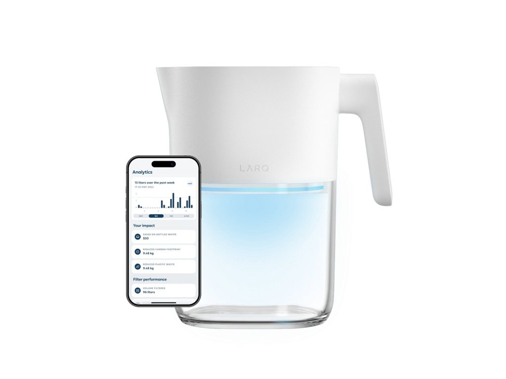 S elegantním designem a chytrými funkcemi je LARQ Pitcher PureVis™ dokonalým doplňkem moderní domácnosti. Jednoruční plnění umožňuje snadné používání a integrovaný dotykový senzor λ aktivuje režim PureVis™ jediným klepnutím. Výsledkem je voda, která nejen skvěle chutná, ale i prospívá – ideální pro přípravu kávy, čaje, smoothie nebo vaření. Díky aplikaci LARQ Smart Hydration můžete navíc sledovat svůj denní příjem vody a udržet si zdravou hydrataci každý den.