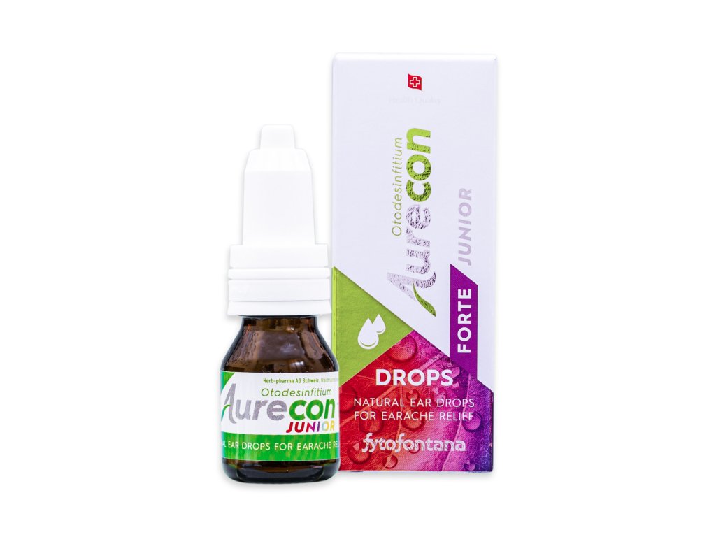 Kapky do uší pro děti Aurecon drops forte Junior jsou sestavené tak, aby zohledňovaly všechny potřeby i rizika vyplývající z nedostatečné starostlivosti o vnější zvukovod. Aurecon drops forte Junior je užitečným a lehce použitelným prostředkem pro pravidelnou starostlivost o pokožku vnějšího zvukovodu. Je tvořený přírodními látkami – oleji, u kterých je příznivá účinnost známá. Tlumí i nepříjemné projevy bolesti (levandulový olej) a též poskytuje ochranu proti nežádoucím mikroorganismům. Obsahuje též Laureth-9, látku, která zvyšuje dobrý kontakt přípravku s pokožkou a která má i místní znecitlivující účinek. Přípravek tak může příznivě působit při mírných zápalech pokožky vnějšího zvukovodu, středního ucha a bubínku, nacházející se v počátečním stádiu. V případě použití při bolestech způsobených zápaly, přípravek působí antisepticky proti jejich zdrojům. Neobsahuje konzervační látky.