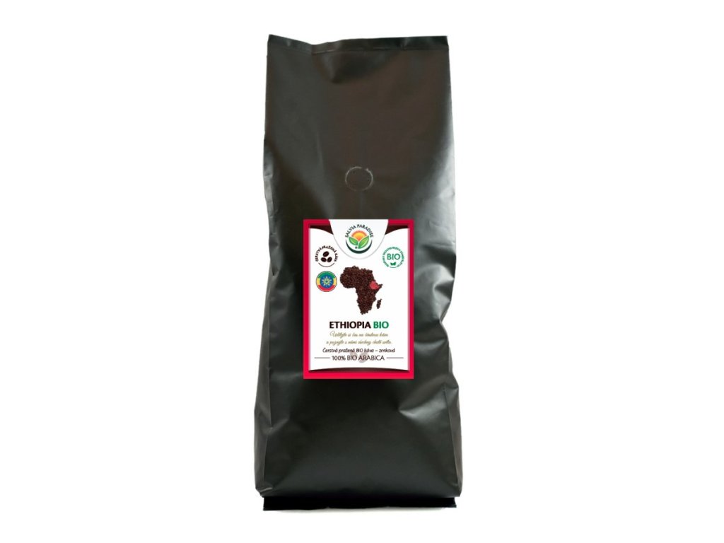 Etiopie BIO je druh kávy, který řadíme mezi nejlepší kávová zrna na celém světě. Má plnou, avšak lehkou oříškovou chuť, lze zachytit tóny čokolády nebo vína. Celkový dojem doplňuje květinové aroma.