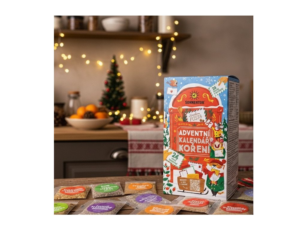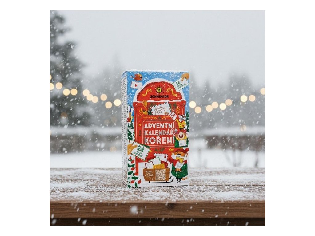 Adventní období může být ještě kouzelnější – každý den totiž můžete objevovat nové vůně, barvy a chutě z celého světa! Adventní kalendář® koření od SONNENTOR přináší 24 různých druhů bio koření, směsí a přípravků v praktických sáčcích. Každé ráno na vás čeká malé překvapení – třeba exotické Aladinovo koření do kávy, voňavé Perníkové koření, jemně nasládlá směs Dobrý anděl nebo svěží Provensálské koření. Díky rozkošným ilustracím se navíc tento kalendář proměnil ve schránku na dopisy pro Ježíška – ideální dekoraci do kuchyně, která potěší malé i velké milovníky vaření.