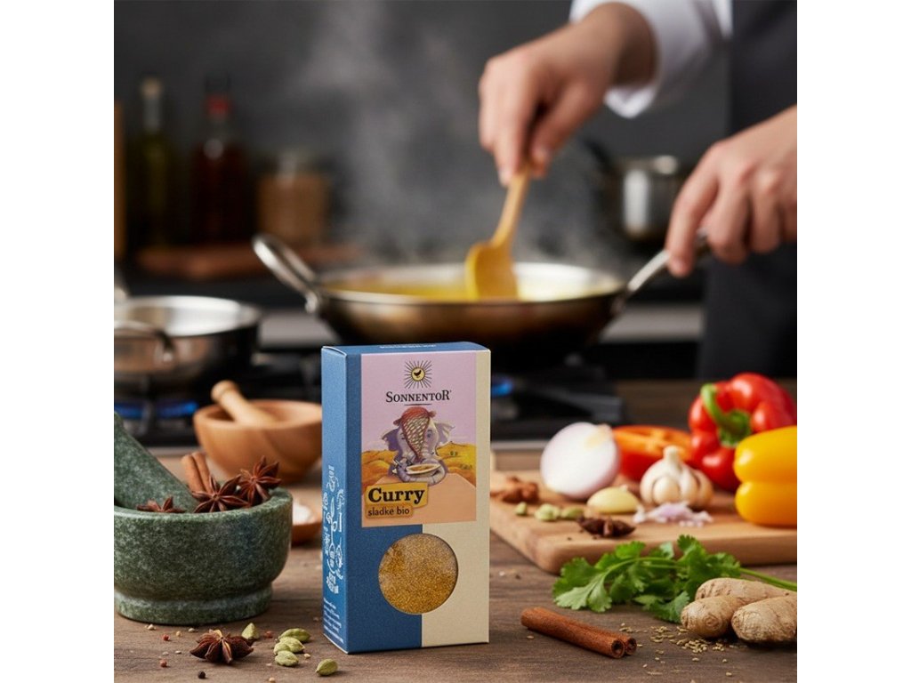Vstupte do světa chutí a vůně, kde se a barvy mísí do dokonale vyvážené symfonii. Bio směs Sladké Curry od Sonnentoru přináší jemnou orientální kombinaci koření, která potěší milovníky exotických a orientálních jídel, ale i ty, kteří dávají přednost mírnějším, nasládlým tónům. Základem je římský kmín, koriandr a kurkuma, jejichž teplé a zemitě pryskyřičné aroma doplňuje sladká paprika, fenykl, pískavice řecké seno a hořčice žlutá. Vše je doladěno špetkou mořské soli, bobkovým listem, rozmarýnem, tymiánem a zázvorem, což vytváří dokonale harmonickou a přitom překvapivě jemnou chuť.