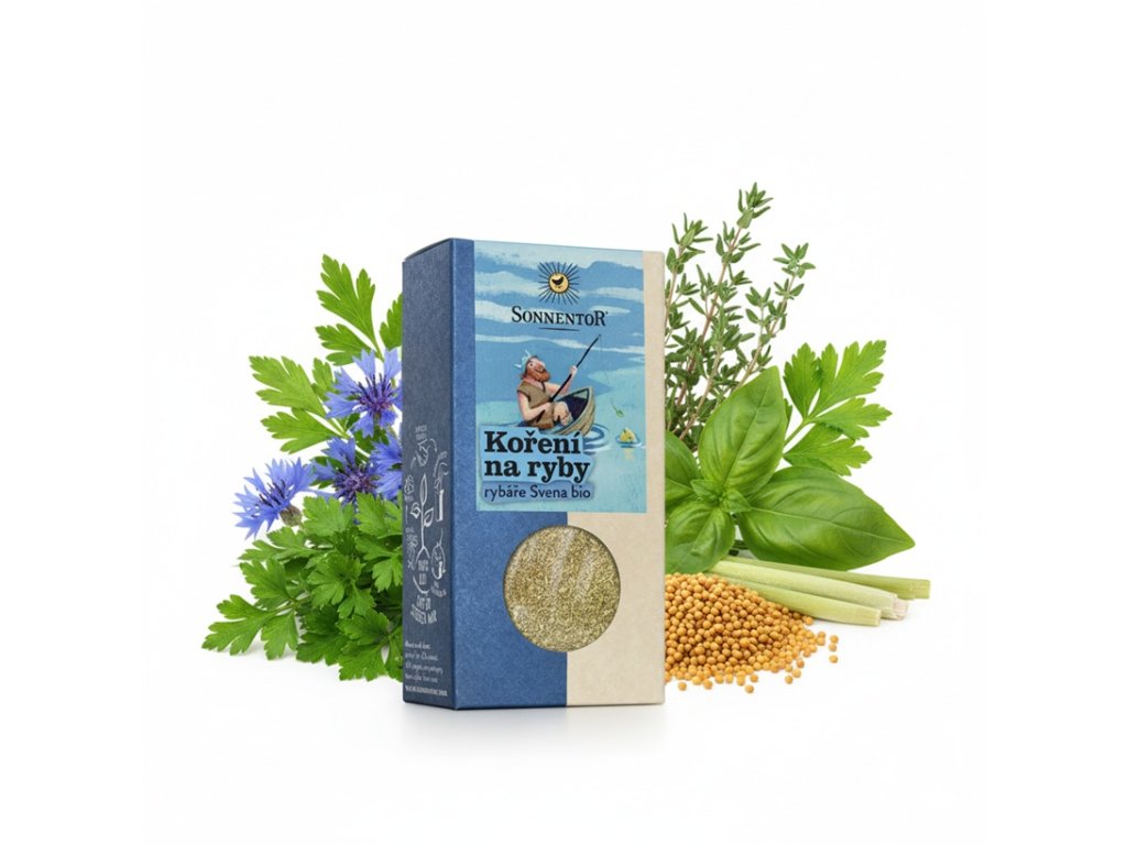 Nechte se inspirovat severskými břehy a vkročte do kuchyně zkušeného rybáře Svena, jehož lodička se pod tíhou úlovku sotva drží na hladině. Sonnentor Koření na ryby rybáře Svena je bio směs, která v sobě spojuje aromatickou sílu bylinek a jemné pikantní tóny, typické pro čerstvé mořské i sladkovodní pokrmy. Základem směsi je libeček, petržel, tymián a žlutá hořčice – byliny, které dodají rybímu masu neodolatelnou chuť a vůni, aniž by překryly jeho přirozenou jemnost.
