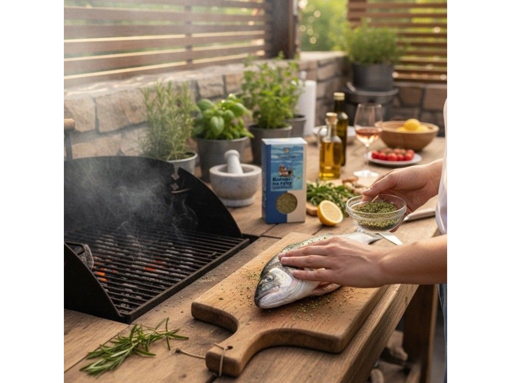 Toto jemně mleté koření je stvořené pro všechny milovníky rybích delikates. Skvěle se hodí k lososu, tresce, pstruhovi i kaprovi, stejně tak však i k mořským plodům nebo rybím polévkám. Směs má výraznou bylinnou chuť s libečkem v hlavní roli, který se dokonale snoubí s pikantní hořčicí a svěžestí petržele. Doporučujeme ji přidávat až ke konci vaření nebo těsně před servírováním, aby se zachovalo její plné aroma a jemná chuťová rovnováha.