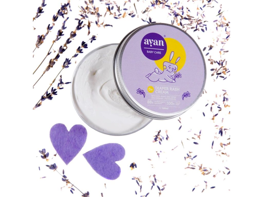 Kojenecký krém na opruzeniny AYAN je obohacený o esenciální levandulový olej, který zabraňuje podráždění a vzniku opruzenin. Tento krém poskytuje okamžitou úlevu od nepříjemných pocitů a je vhodný také na mokvavá ložiska kdekoliv na těle.