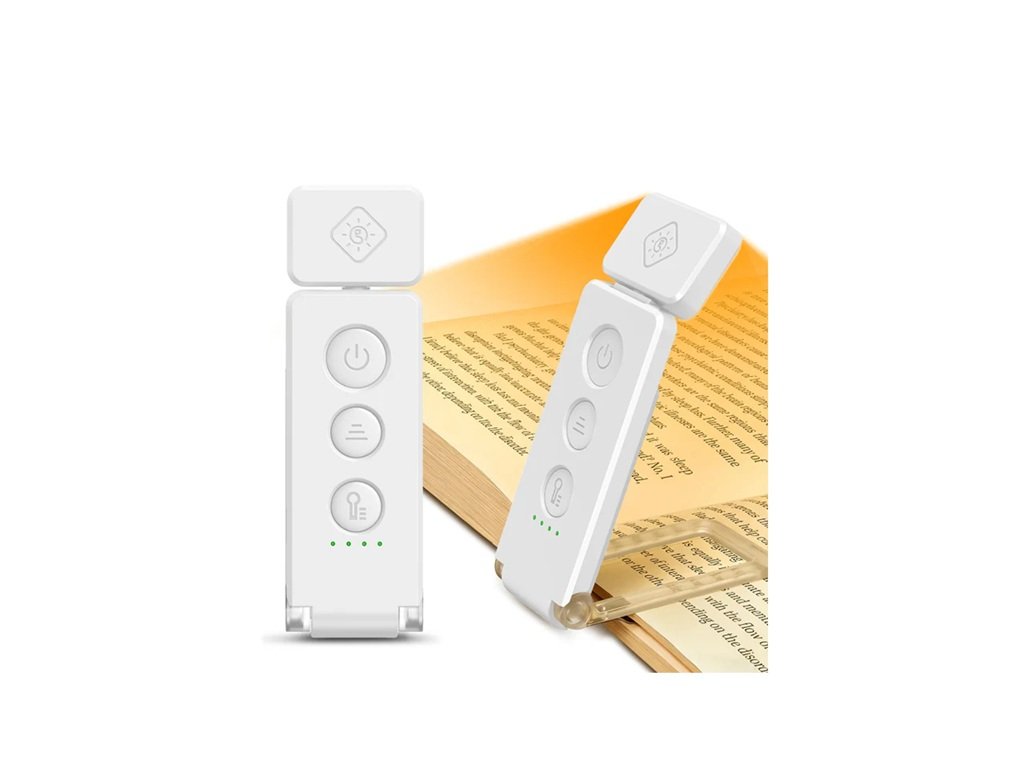 Úhel svícení 110° minimalizuje únik světla do okolí, tichá tlačítka neruší spolunocležníky a nastavitelná hlava (90° do stran, 60° dolů) umožní přesné nasměrování světla. Pevná konstrukce z odolného ABS plastu a hladké klouby zajistí dlouhou životnost, zatímco klip bezpečně drží na knihách různých tlouštěk bez poškození stránek. Díky hmotnosti pouhých 1,8 oz (cca 50 g) a ultra tenkému složení je ideální i na cestování. V balení najdete vše potřebné: lampičku, USB-C kabel, návod a záložku.