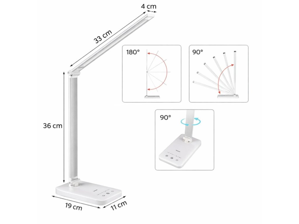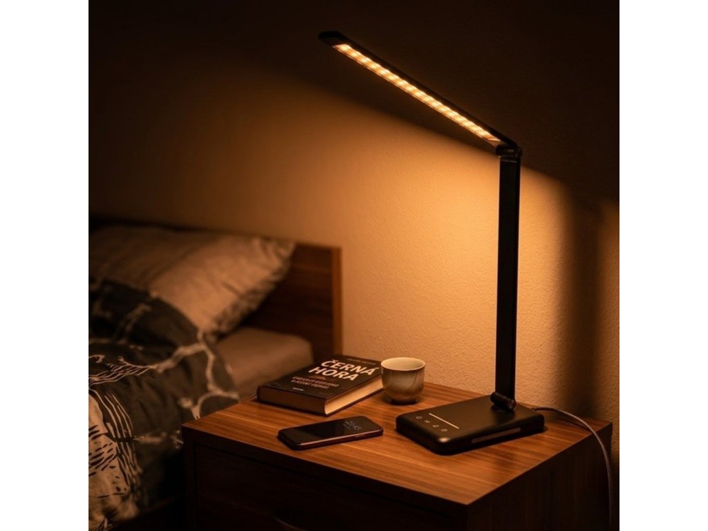 Napájení přes USB dává lampičce flexibilitu doma, v kanceláři i na cestách stačí ji připojit k adaptéru, powerbance nebo počítači. Pracuje na 5V 2A a využívá úsporný LED zdroj s životností až 50 000 hodin, takže je vhodná pro každodenní dlouhodobé používání bez výměny světelného zdroje. Praktickým doplňkem je boční noční světlo pro jemné ambientní osvětlení, když nechcete svítit naplno. Integrovaný časovač zajistí automatické vypnutí, což se hodí při večerním čtení nebo usínání. Konstrukce kombinuje plast a hliník, díky čemuž je lampička stabilní a zároveň snadno přenositelná.