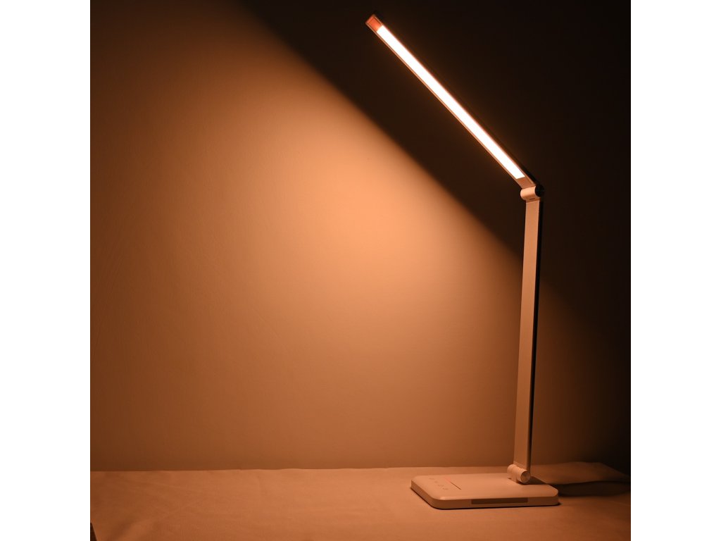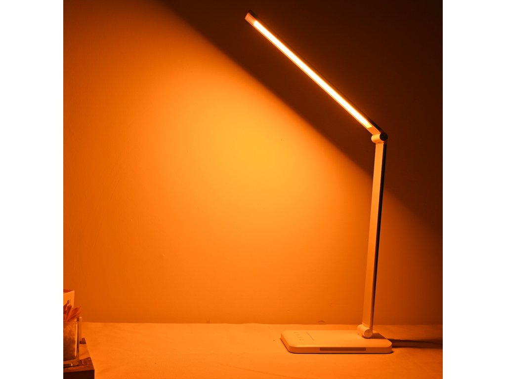 Tato LED stolní lampička nabízí 5 režimů svícení od pracovního bílého po oranžové a červené tóny pro uvolnění. Díky CRI >85 poskytuje přirozené podání barev a příjemné světlo při čtení i u monitoru. Dotykové ovládání umožní rychle nastavit jas i barvu, ohebný krk nasměruje světlo přesně na plochu stolu.