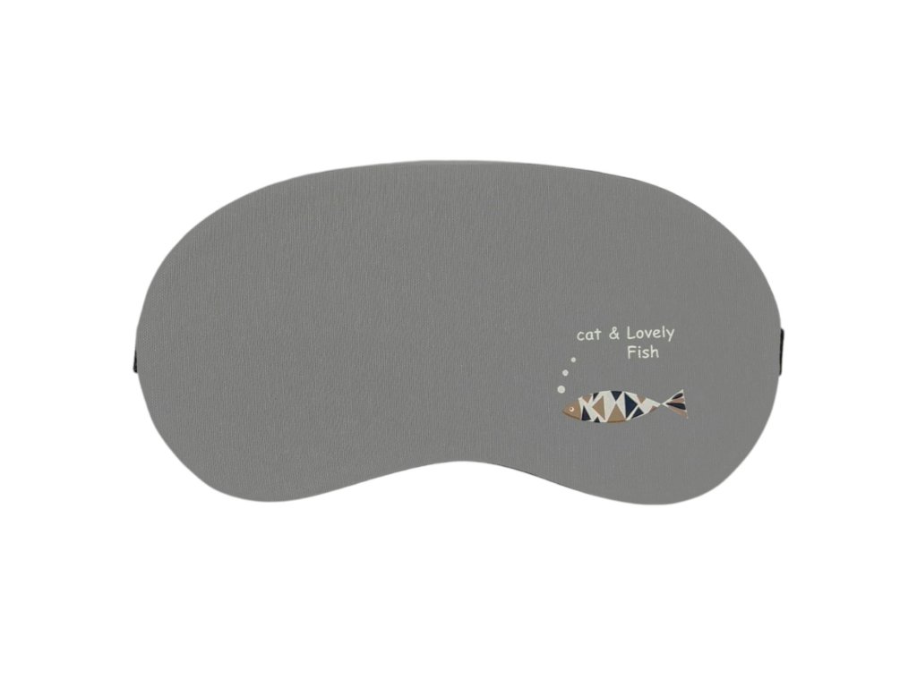 Bavlněná maska na oči na spaní šedé barvy s motivem rybičky a napisem "cat and lovely fish". Pohodlná, příjemná na obličej a chrání oči před světlem. Maska zároveň může sloužit jako zábava pro děti.