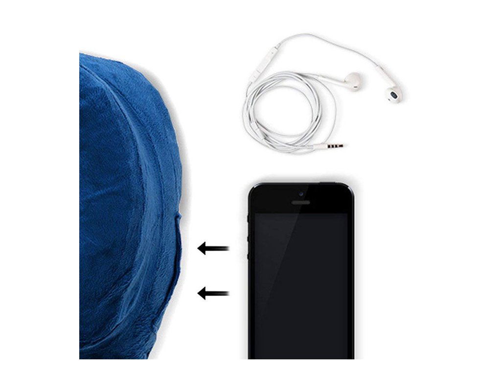 Praktické pouzdro na boku polštáře může udržet vaše špunty do uší, sluchátka, telefon nebo MP3 přehrávač.