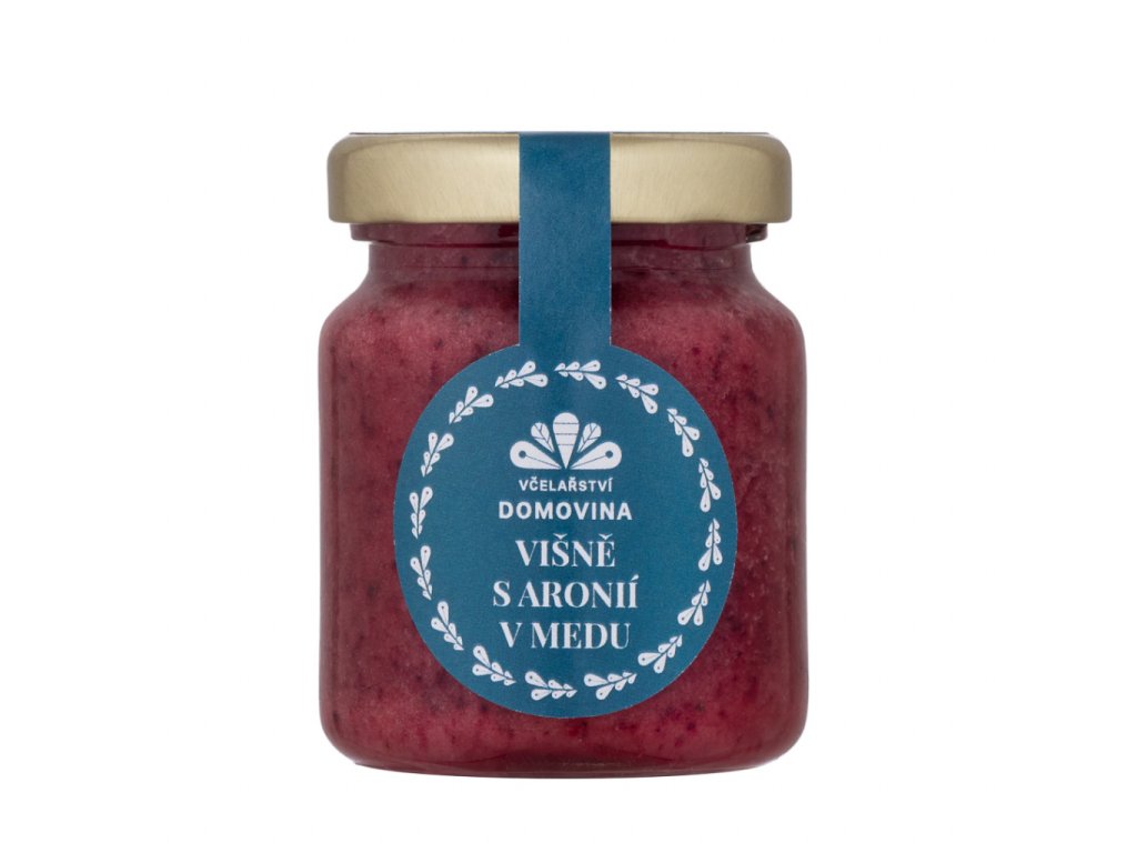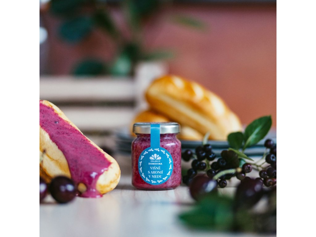 Med s višněmi a aronií rovná se med a kyselost na druhou. Skleničku plnou červeno-fialové a zdravé pochoutky z farmy Včelařství Domovina si užijete s vášní.