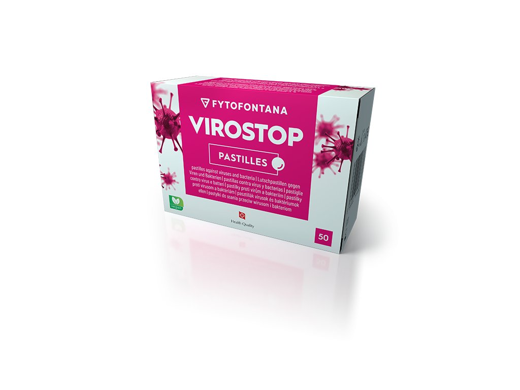 Chřipka a nachlazení patří mezi nejčastější infekční onemocnění, která jsou doprovázena postižením dýchacích cest a dalšími výraznými příznaky. Výzkumníci společnosti Herb-pharma AG vyvinuli Virostop pastilky s jedinečnou kombinací látek. Speciální výtažek z cistu krétského obsahuje v koncentrované formě polyfenoly, které vytvářejí ochranný film na sliznici a tím brání vniknutí bakterií a virů do organismu. Další obsažené látky - citrusové bioflavonoidy, třapatka nachová, šalvěj lékařská a barbadoská třešeň - posilují protivirový neutralizační účinek.