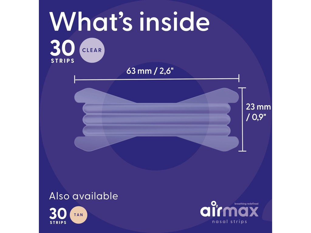 Airmax využívá patentovanou technologii Smart-Flex, která přináší až o 50 % silnější zvednutí nosních křídel, o 40 % lepší přilnavost a o 20 % větší pokrytí než konkurenční značky. Díky tomu drží pásky spolehlivě i při sportu, a přesto jsou maximálně komfortní. Neobsahují přírodní latex ani žádné toxické látky – jsou tedy vhodné i pro citlivou pokožku a alergiky.