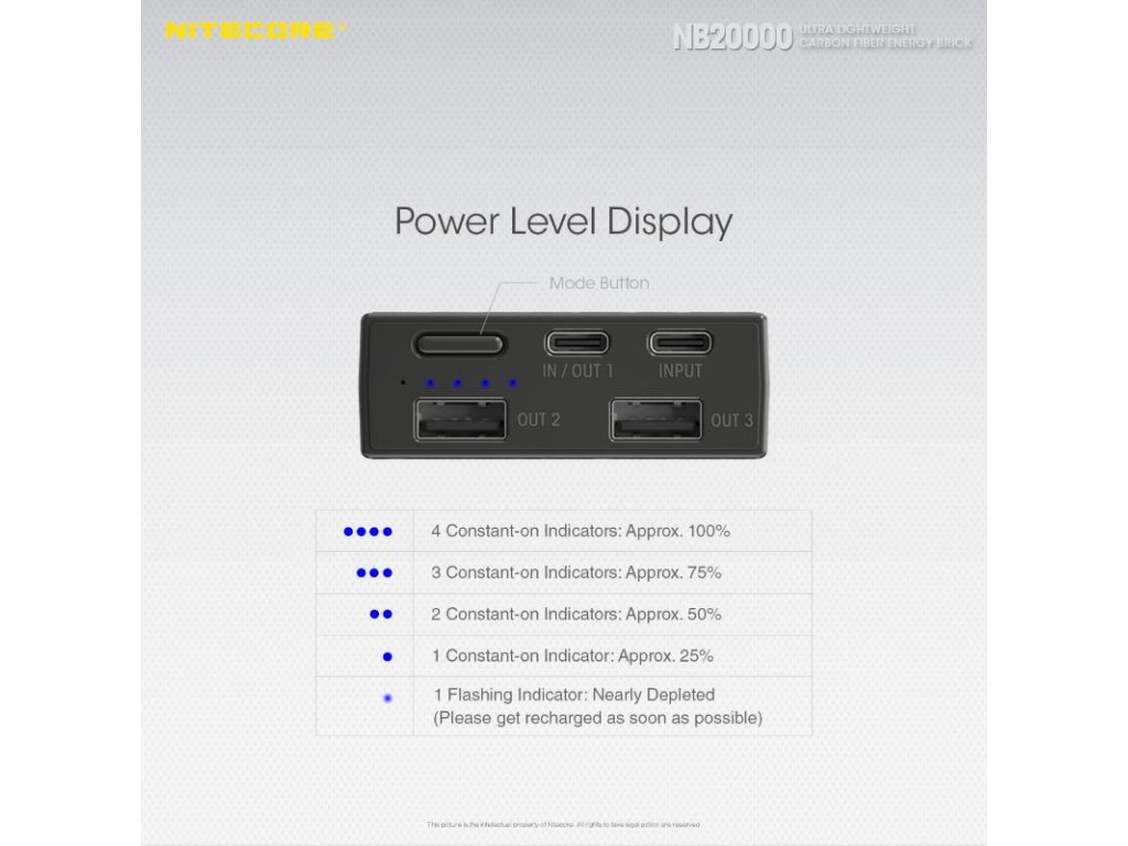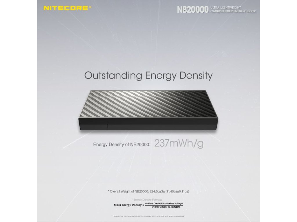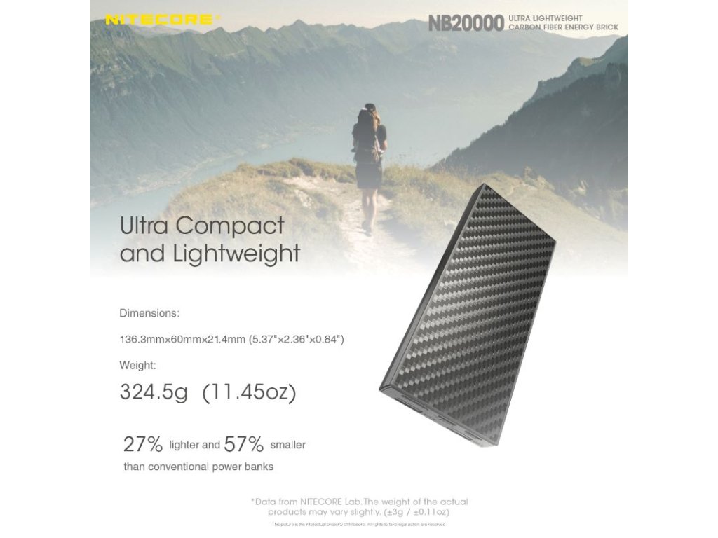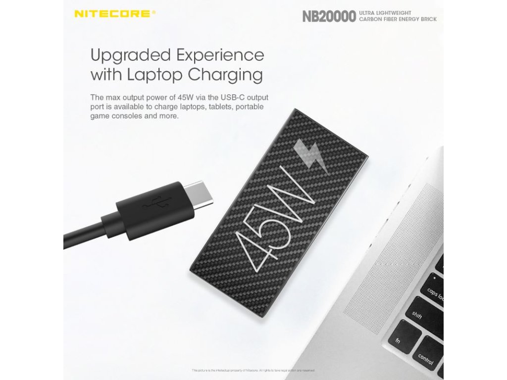 - Kapacita: 20 000 mAh – nabijete až 4x mobilní telefon Huawei P30, akumulátory NITECORE, iPad, MacBook nebo herní konzole.