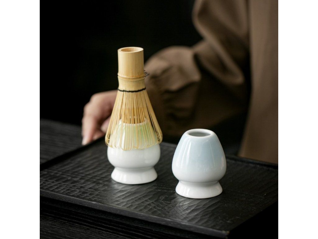 Keramický stojánek je určený pro odkládání matcha metličky chasen po použití. Pomáhá metličce udržet přirozený tvar, chrání jemné štětinky před deformací a podporuje správné proschnutí. Díky stabilnímu keramickému provedení pevně drží na místě a hodí se pro každodenní matcha rituál doma i v práci.
