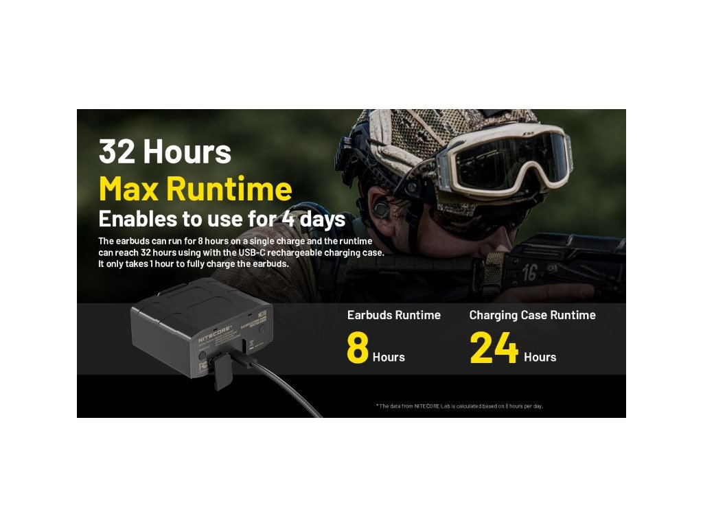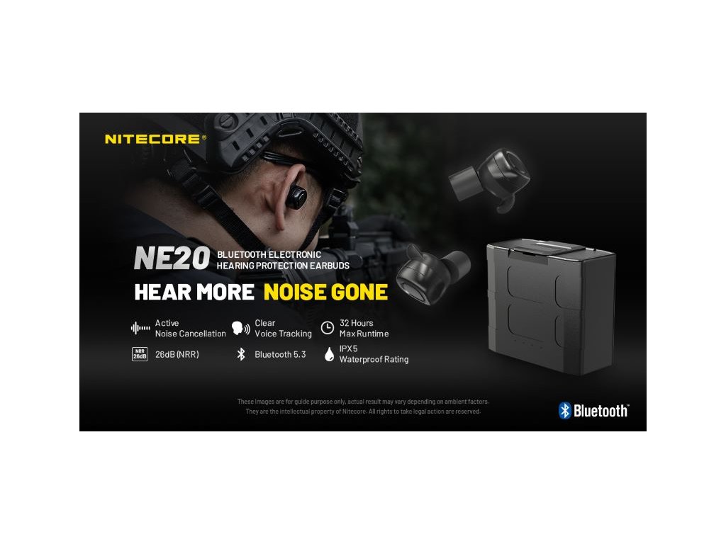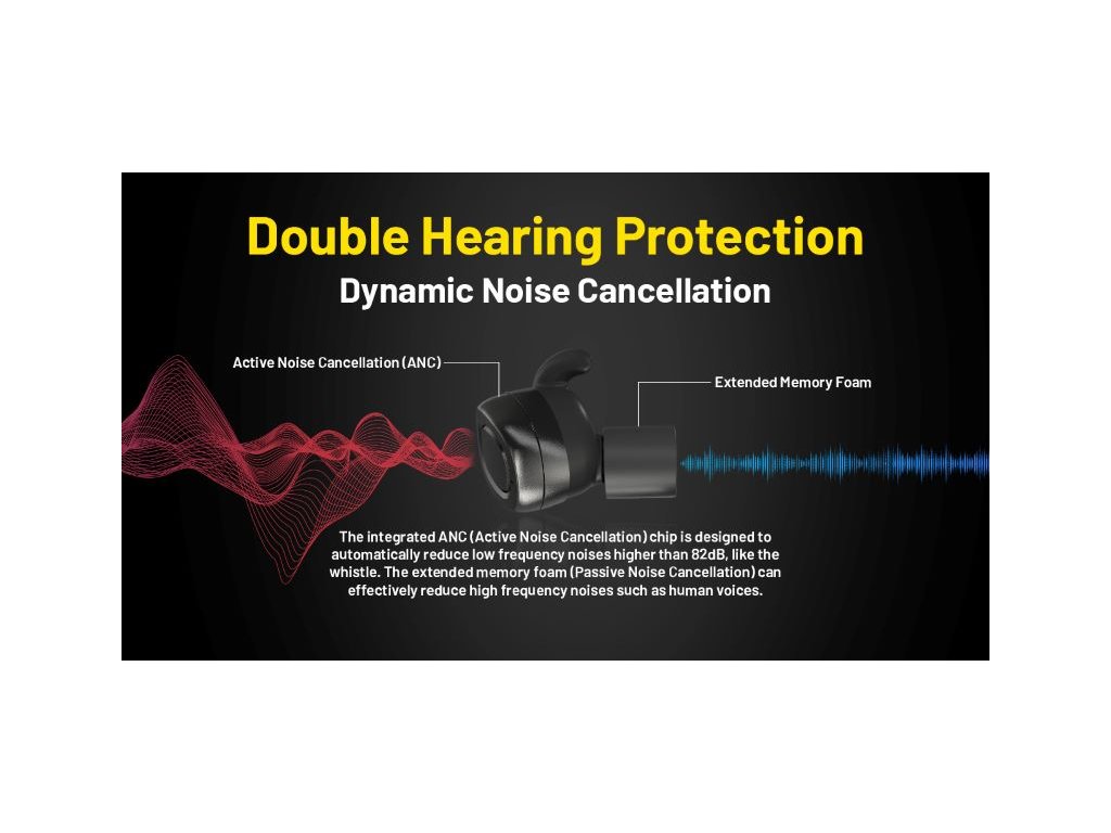 Sluchátka Nitecore NE20 vynikají rychlostí reakce na okolní hluk až 0,1 sekundy a nabízí čistý přenos hlasu. Díky pokročilé technologii kombinují aktivní elektronické tlumení s pasivní ochranou v podobě pěnových špuntů, které jsou k dispozici ve třech velikostech (S, M, L).