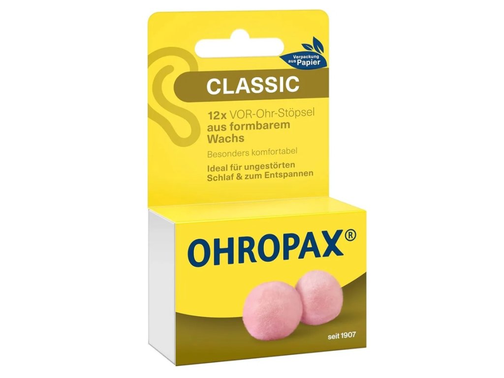 Ohropax Classic je velmi dobře zavedeným přípravkem pro ochranu před hlukem a vyrábí se již od roku 1907. Jeho jedinečné složeni, které se skládá z vaty namočené ve směsi vazelíny s různými parafíny, bylo od počátku tak dobře koncipováno, že se jeho složení ke dnešnímu dni sotva změnilo.