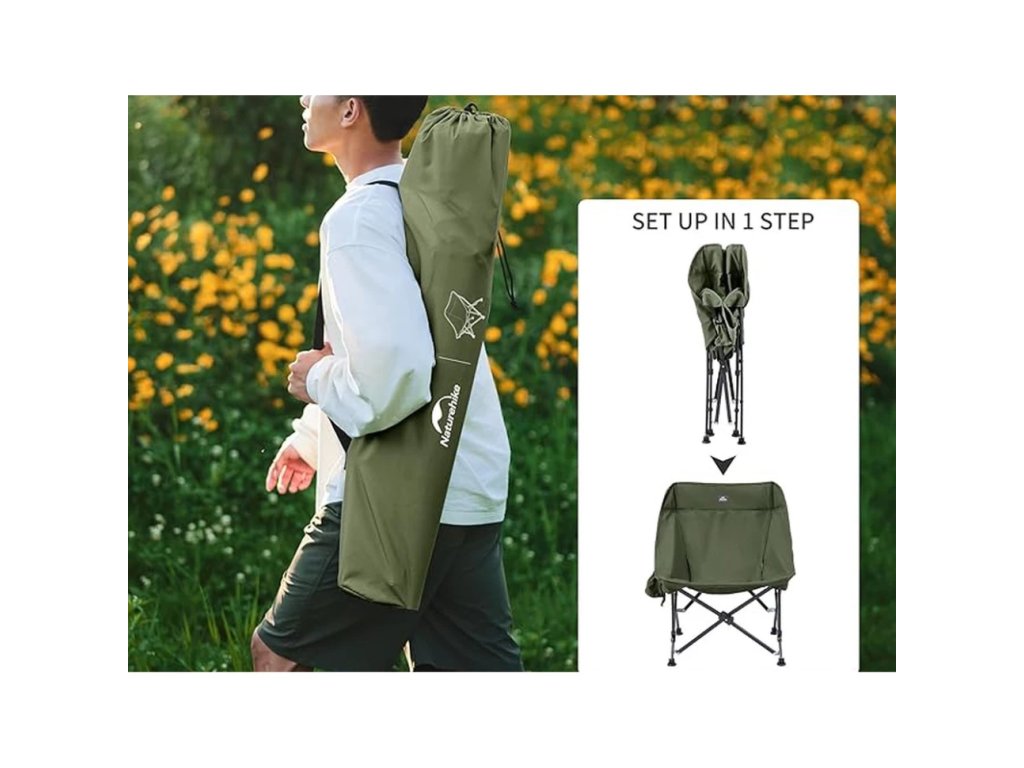 Naturehike T03 moon je skladací kempingová stolička typu „moon chair“, která kombinuje pohodlí hlubokého sedáku s rychlou stavbou a kompaktním balením. Ideální na kempování, rybaření, festivaly i posezení na zahradě – usadí vás stabilně a pohodlně, a přitom v batohu nezabere téměř žádné místo.