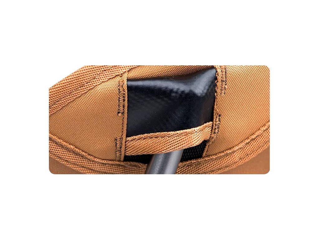 Kromě nízké váhy židle vyniká i její skladnost. Po sbalení zabere pouze 35 x 15 cm, což ji činí ideální pro připevnění na batoh nebo termotašku. Součástí balení jsou čtyři přídavné nástavce na nohy, které lépe rozloží váhu a zabrání propadání do měkkého nebo sypkého povrchu, což vám zajistí větší stabilitu a komfort i na méně pevném terénu.