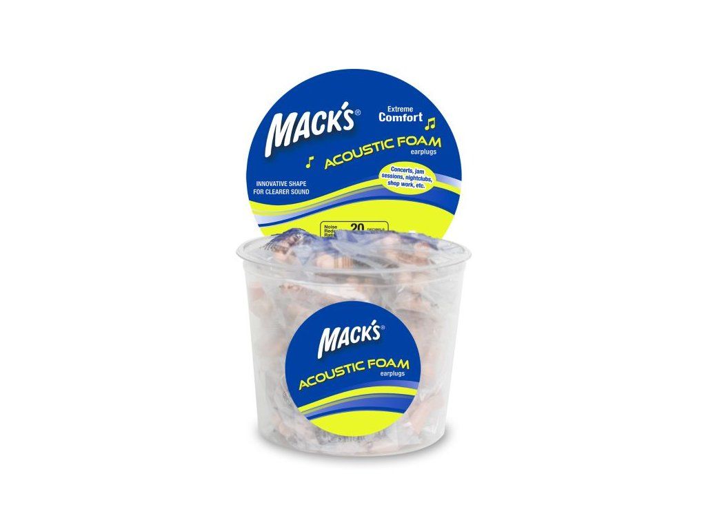 Špunty Mack's Acoustic Foam™ jsou vytvořené tak, aby blokovaly škodlivý hluk a šum a zanechaly pouze čistý hudební zážitek. Jejich inovativní tvar s dutým výřezem zajišťuje jasnější akustiku a umožňuje lepší komunikaci v hlučném prostředí jako jsou bary, nočních kluby, dílny apod.