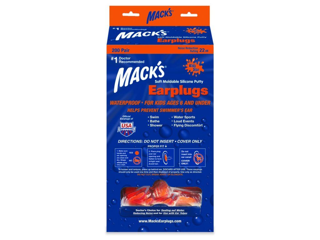 Mack's měkké tvarovatelné silikonové ucpávky pro děti (Soft Moldable Silicone Putty Ear Plugs - Kids Size) jsou vhodné pro ultimátní pohodlí uší při plavání. A zároveň jsou vhodné i proti hluku. Tyto zátky se přizpůsobí unikátním konturám jakýchkoli uší.