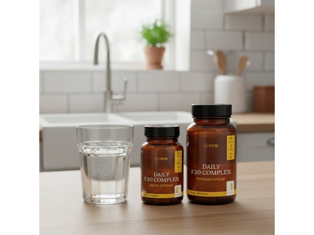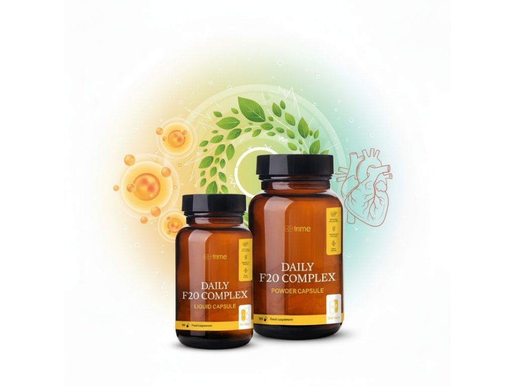 Kombinace práškových a tekutých kapslí není jen estetickým prvkem, ale především technologickým vylepšením. Umožňuje zachovat citlivé nutrienty ve své přirozené formě, chránit je před oxidací a zaručit jejich maximální stabilitu. F20 Complex tak poskytuje dlouhodobý efekt bez ztráty účinnosti. Bez syntetických aditiv, plnidel či konzervantů – pouze čistá příroda v nejúčinnější podobě.