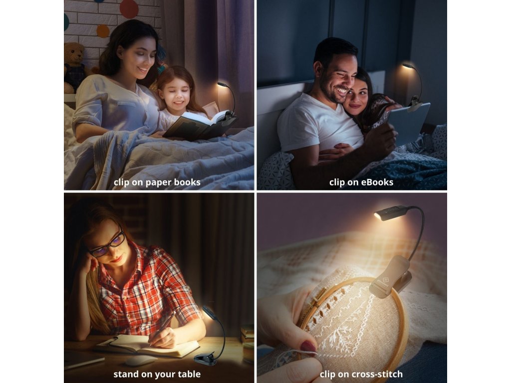 Glocusent klipová lampička je navržena tak, aby poskytla příjemné a nerušivé osvětlení pro večerní čtení. Kompaktní tvar, tichý chod bez blikání a možnost přichycení ke knize nebo stolku z ní dělají dokonalého společníka do postele i na cesty.