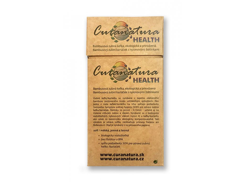 Zubní kartáčky Curanatura jsou ideální volbou pro vaše zuby i pro přírodu. Jako jedny z mála na trhu splňují všechna kritéria Světového sympozia dentální hygieny. Jsou vyrobené bez použití ftalátů a BPA (bisfenolu-A) z tepelně upraveného bambusu pěstovaného bez pesticidů a sbíraného s ohledem na dlouhodobou produkci. Štětinky mají z bambusových vláken nebo z v přírodě rozložitelného nylonu 4. Zubní kartáčky jsou 100% biologicky rozložitelné a balené v recyklovaném papíře, takže nezatěžují životní prostředí.