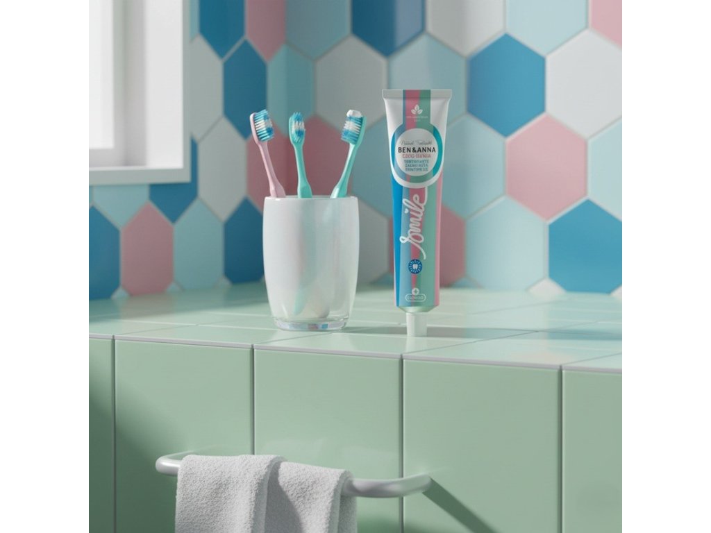 Ben & Anna TOOTHPASTE TUBE – Coco Mania with Fluoride je ideální volbou pro všechny, kteří milují jemné, přírodní produkty a chtějí své ústní hygieně dopřát něco výjimečného. Tato tropická zubní pasta s kokosovou příchutí je určená pro každodenní používání a hodí se pro dospělé i starší děti. Už v prvních okamžicích zaujme svou jemně sladkou chutí kokosu a pocitem svěžesti, který v ústech přetrvává dlouho po vyčištění. Díky kombinaci přírodních složek poskytuje důkladné čištění, ochranu před kazy a zároveň je šetrná k zubní sklovině i citlivým dásním.