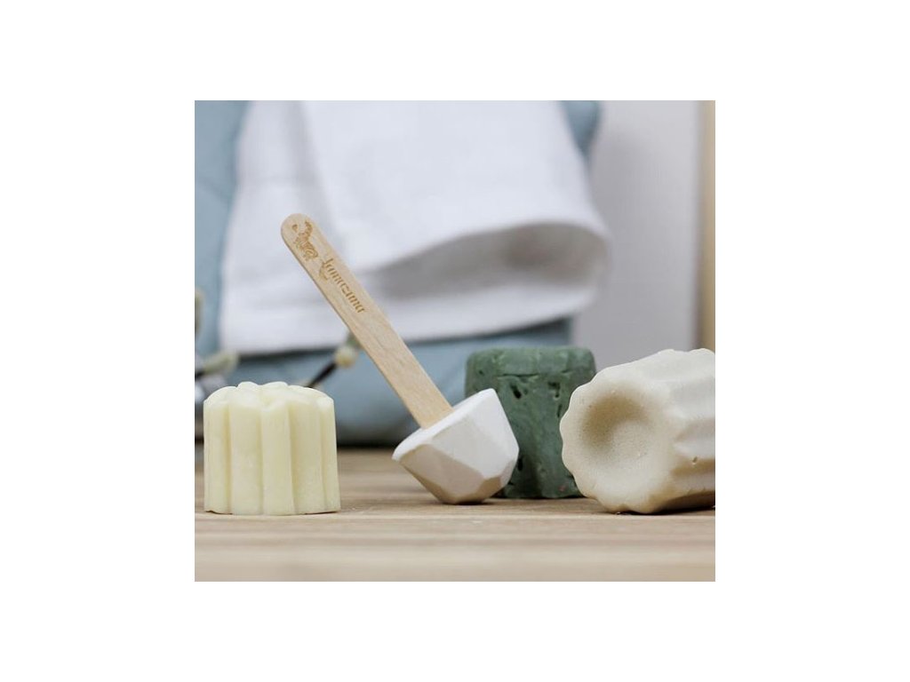 - Zubní pastu odložte na tácek nebo do skleničky. Pokud chcete mít jistotu, že se na pastu nebude prášit, skladujte ji ve skleněné dóze Lamazuna. Dřevěné držátko pohodlně projde průduchy ve víčku a pasta je přitom chráněná.